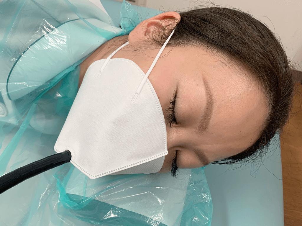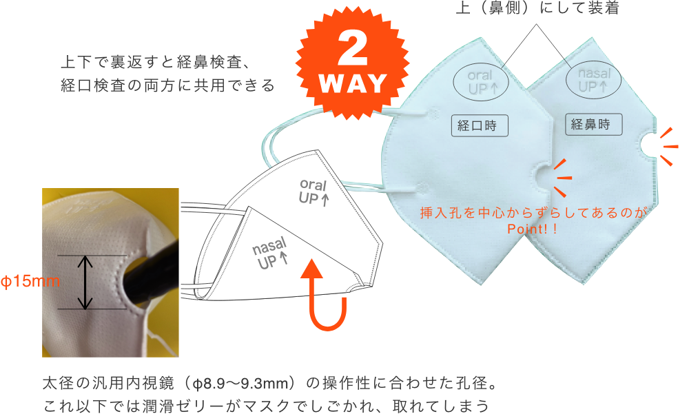 「内視鏡検査」のために考案された 被験者用マスクです。